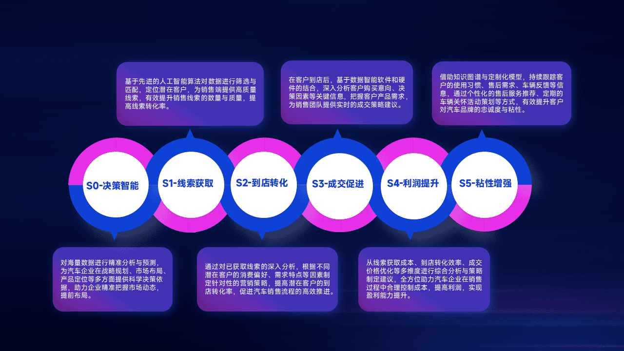 通过拓宽潜在客户来源、、、优化线索分配并提高到店转化率,,,,以增强销售效率。。。。同时,,,利用线索数据不断优化分析模型,,,有效提升转化率,,扩大营销影响力。。